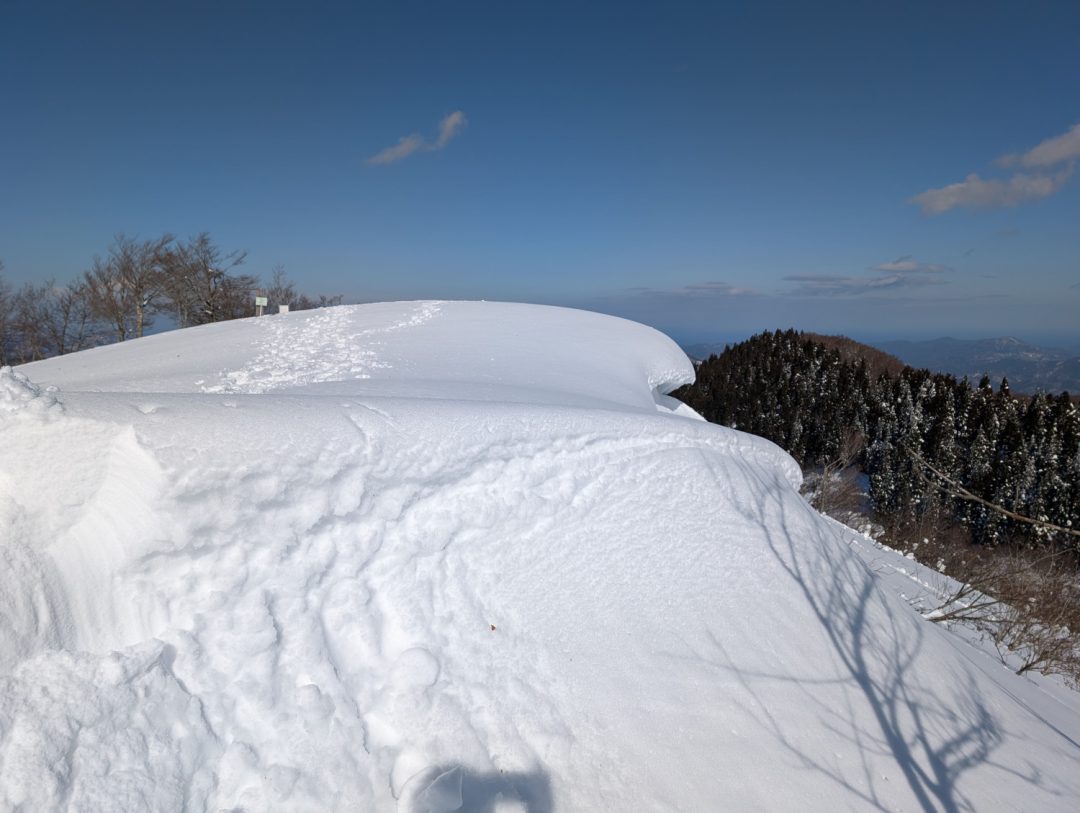 毎年山頂に出来る雪庇はまだ小さく、これからに期待しようと思いました。