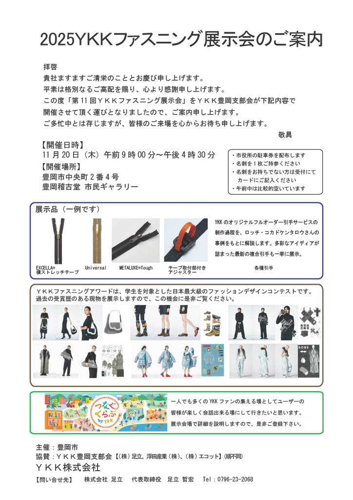 11月17日、豊岡にてYKKファスニング展示会を開催します。