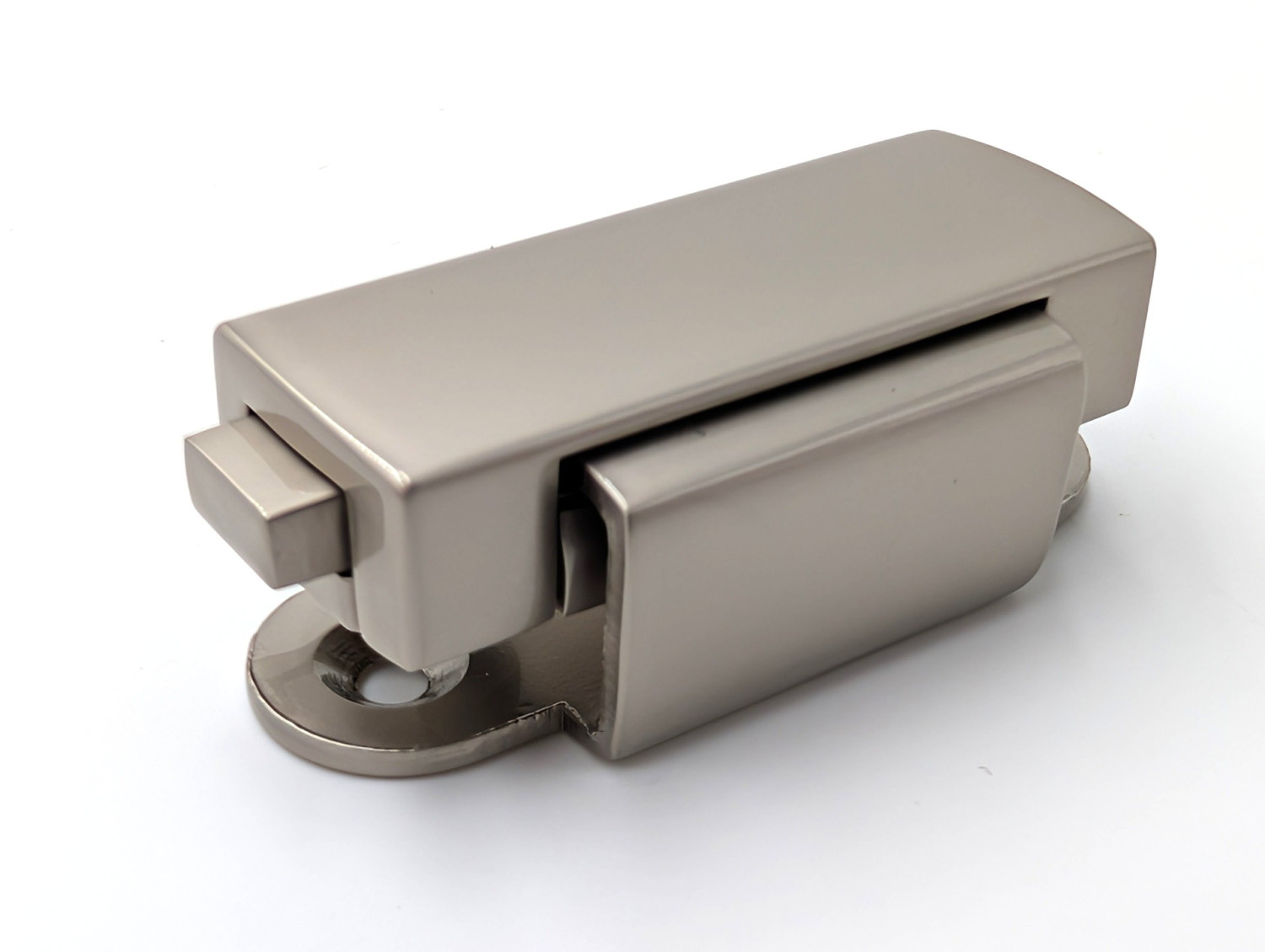 自社開発のダレスバッグ用錠前です。 鍵機能を省き、コンパクトでスマートな形状を実現しました。